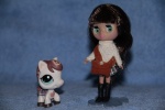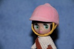 - маленькой куклы Блайз (#B4) с сумкой через плечо, в шапочке наездницы, белом свитере, короткой клетчатой юбке, высоких черных сапогах;